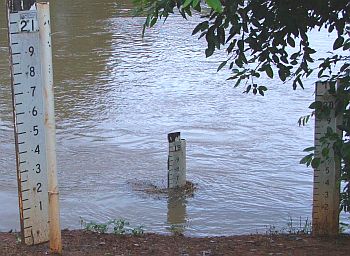 ![]() This snap taken at 7.38AM 06Apr06- showing 18.6 metres *** however, please not that the official level at this time is/was 18.35 metres. Unfortunately the poles are not as accurate as the actual automatic river level equipment or the Painted bridge levels & this is causing confusion with reports*** Courtesy of PM & WM |