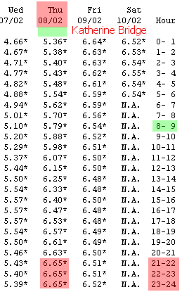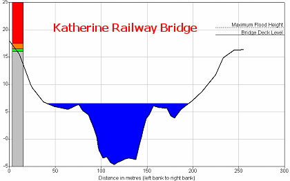 Katherine Railway Bridge plot (water level relates to 10Feb07 and not to peaks indicated on above chart) |