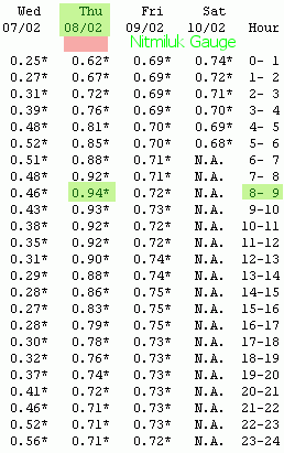 | The Nitmiluk chart (water level in this plot relates to levels on 10Feb07 and not to peaks in the top charts) |